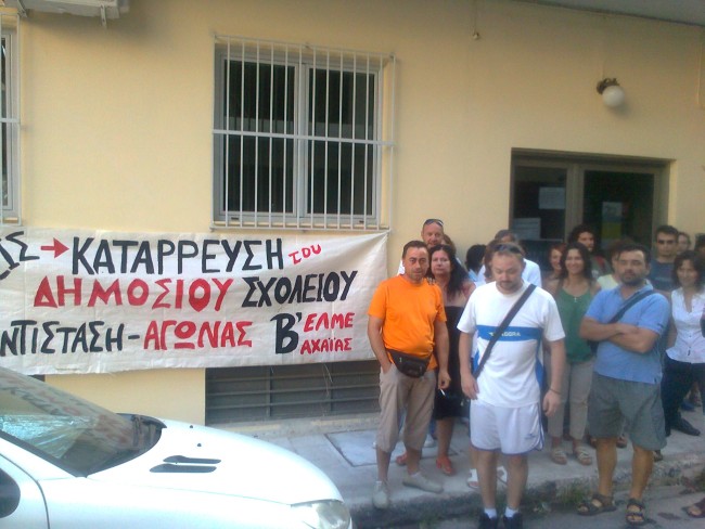 κλεισίματος σχολείων, των απολύσεων εκπαιδευτικών, της εφαρμογής του νέου